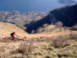 - Über den schmalen Querweg am Hang entlang zur Refugio Menaggio. Dieser Weg ist etwas tricky aber die Aussicht ein Genuß - ebenso die möglichen erfrischenden Getränke im Refugio. Vom Refugio Menaggio ergeben sich wiederrum 3 Möglichkeiten - über den 3-er Wanderweg zum Mt. Plesio, über den "direttissima" zum Mt. Plesio oder über den durchgestrichenen 3-er Wanderweg nach Piazza. Alles mit kurzen Schiebepassagen mehr oder weniger fahrbar.