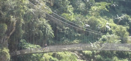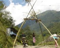 Aus dem netten Trail von früher soll bis in ein paar Jahren eine Strasse nach Tibet führen. Momentan sind viele Teilstücke schon kurz vor dem Teer, andere dagegen immer wieder von Erdrutschen weggespült. Autos fahren zum Glück noch keine, da es bisher ausschließlich Hängebrücken für Fußgänger gibt, die mit dem Rad ein lustiges Kribbeln im Bauch verursachen wenn man schnell genug drüber rollt. Die Träger schleppen zwischen Jomson und Beni teilweise unglaubliche Lasten von Baumaterial, wohingegen die Träger auf unserem Hochweg schwer bepackt sind mit Touristenkleidern! Beim Anblick dessen hatten wir uns geschworen unsere 25 Kg (Rucksack und Bike) selbst bis zum obersten Punkt zu schleppen.